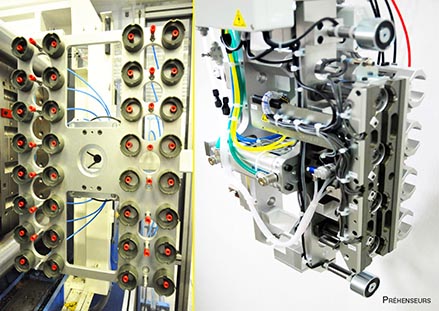In order to increase the added value of pieces produced and because now technical requirements require to raise technological levels, CHAVERIAT ROBOTIQUE develops robot grippers which respond to your most sophisticated projects such as the deposit of inserts to over-moulding with reworking of pieces for dielectric inspections, impermeability, weight, viewing, etc...